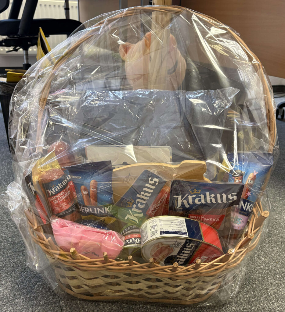 Na licytacje trafił kosz produktów oraz zestaw gadżetów. - Korsze